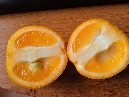 Tato odrůda je velmi vděčná. Plody jsou na Fortunelu velmi velké, sladké jen s velmi příjemnou kyselostí (přibližně jako pomeranč). Uvnitř je několik semen, jí se i se sladoučkou slupkou. Plod sklizený v prosinci 2022: