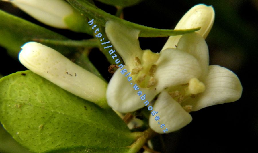 V červnu 2018 je rostlinka sice stále jen asi 20cm velká, ale všechny větvičky jsou obalené množstvím květů. Ty nádherně voní, vůně je silnější než u citrusů, trochu se dá srovnat s vůní Murrayi paniculaty.